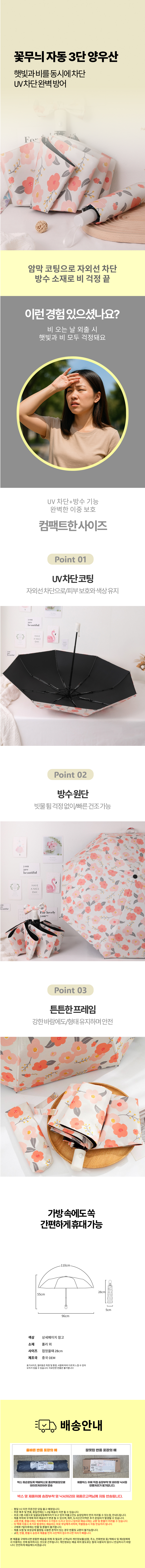 초경량 3단 자동 암막 꽃무늬 uv차단 방수 양산 우산