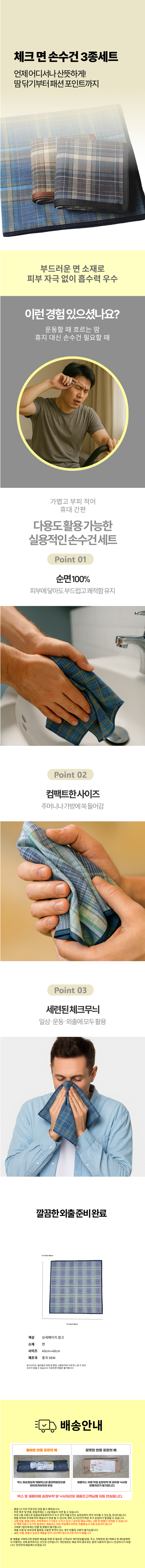 체크무늬 땀수건 휴대용 순면 손수건 3종세트 답례품