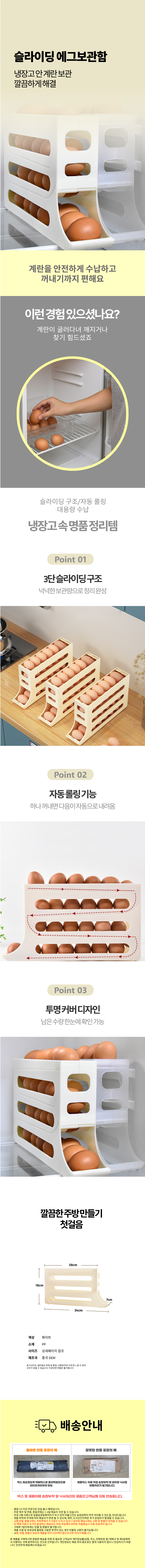 자동롤링 고급 3층 슬라이딩 에그보관함 계란 수납함