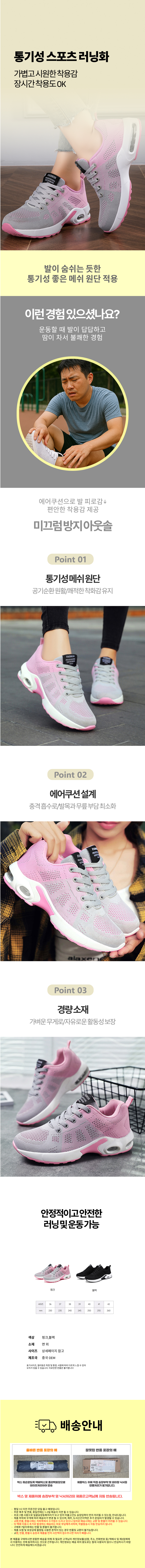 여성 발편한 통기성 러닝화 메쉬 에어쿠션 운동화