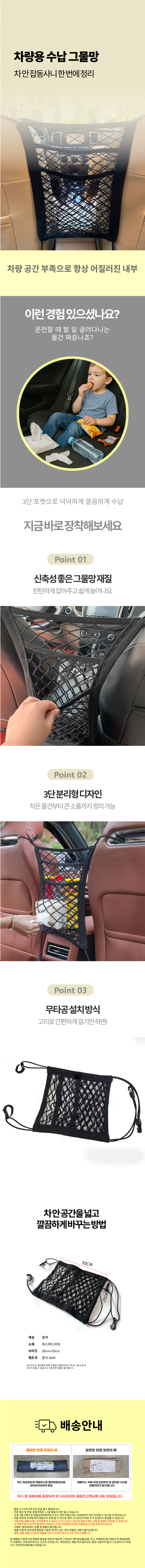 차량 메쉬 조수석 수납 3단 포켓 정리 뒷자석 안전망
