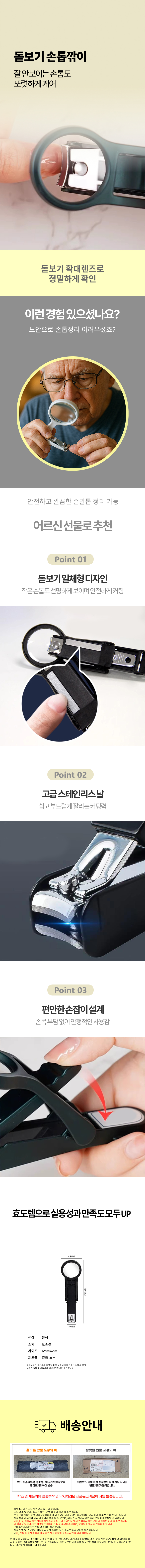 휴대용 미니돋보기 노안 정밀 간병 발톱 손톱깍이