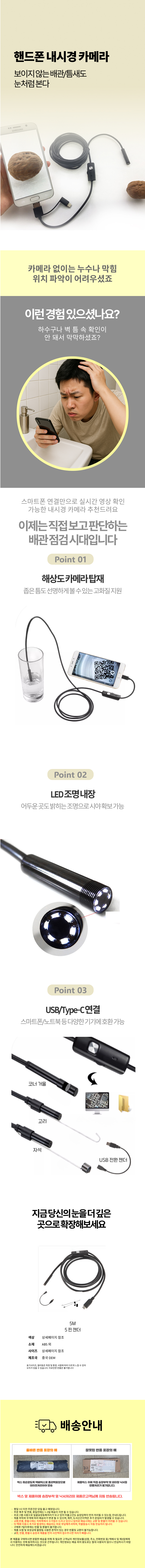 하수구 배관 관로탐지 기타측정 핸드폰 내시경 카메라