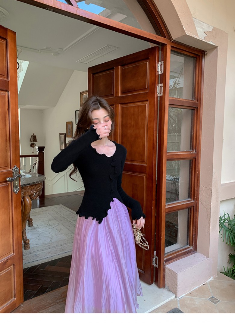 F681041 밑단 절개 슬림핏 신축성 좋은 여리한 소녀 감성 긴팔 티