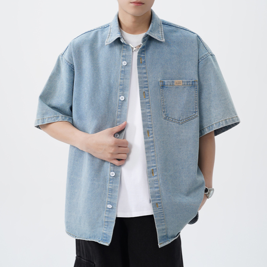 에스이오앤오 남자 청남방 오버핏 워싱 데님 셔츠 반팔