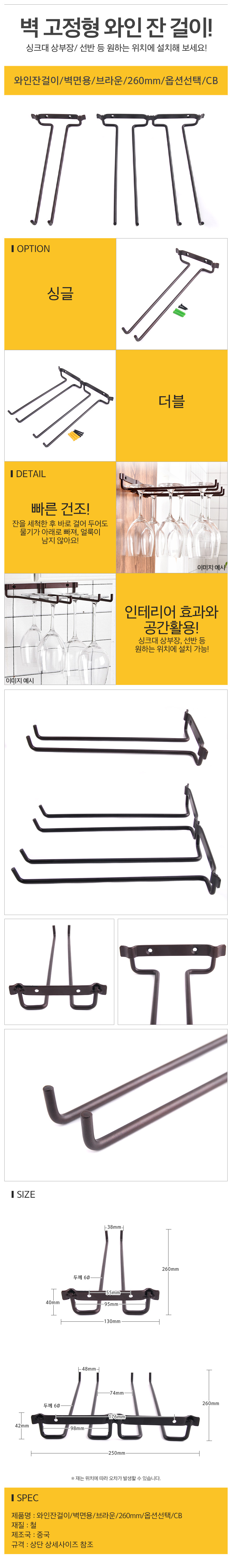 와인잔걸이 벽면용 브라운 260mm 옵션선택 CB