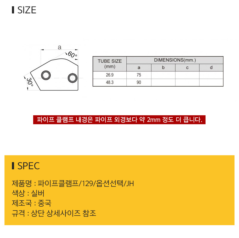 파이프클램프 129 옵션선택 JH