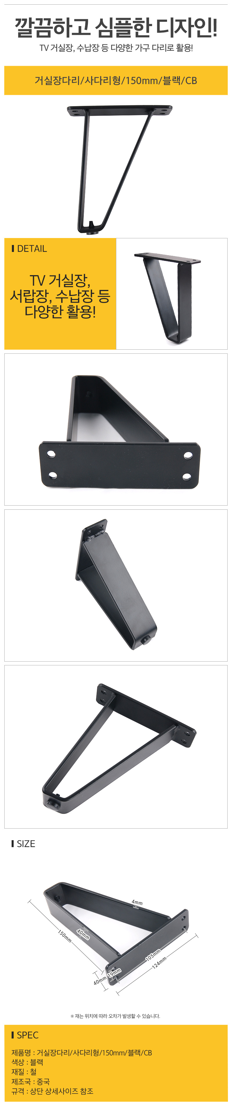 거실장다리 사다리형 150mm 블랙 CB