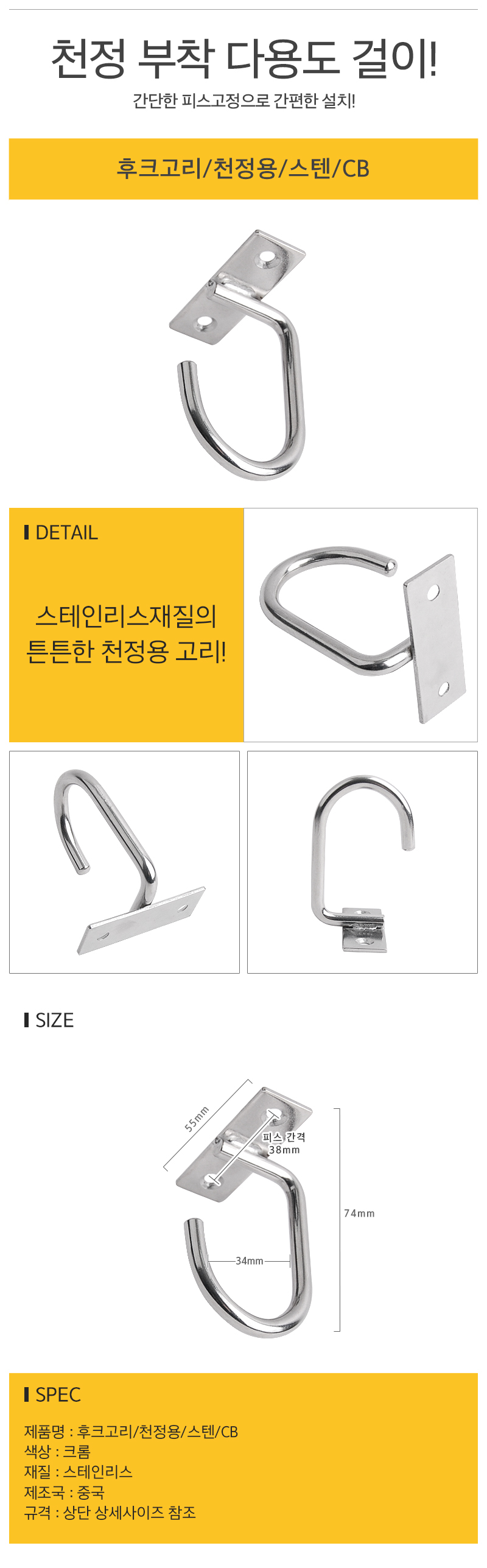 후크고리 천정용 스텐 CB
