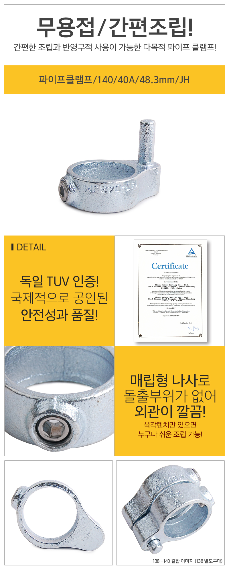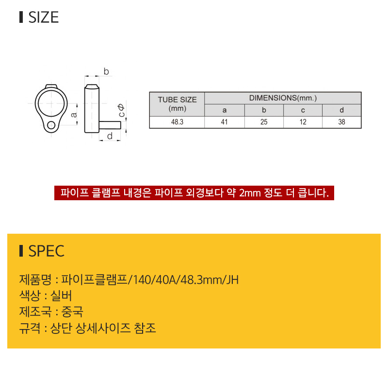파이프클램프 140 40A 48.3mm JH