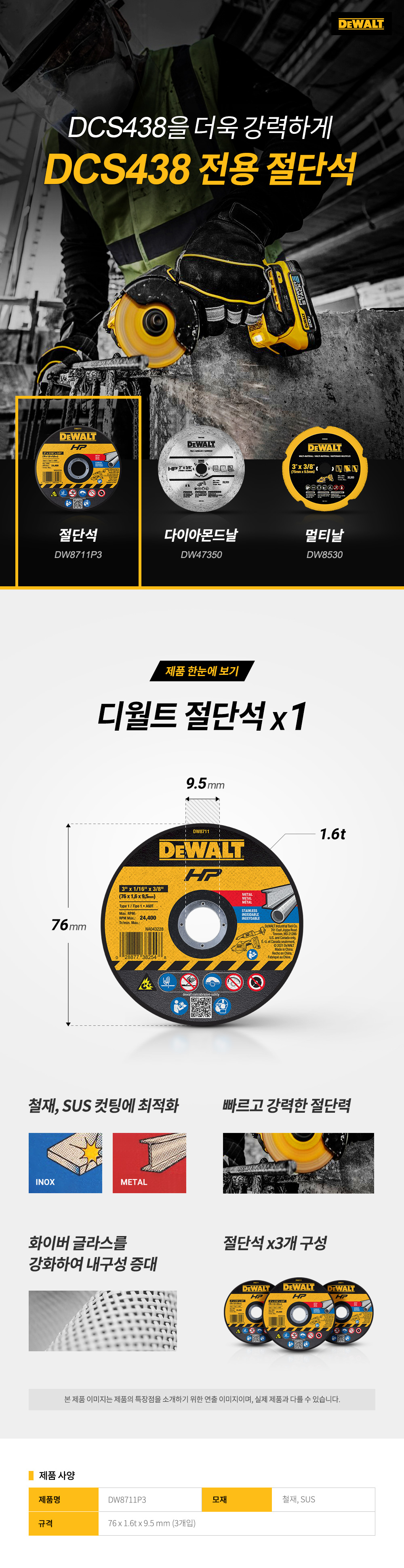 절단석 3인치 DW8711P3 3개입 디월트