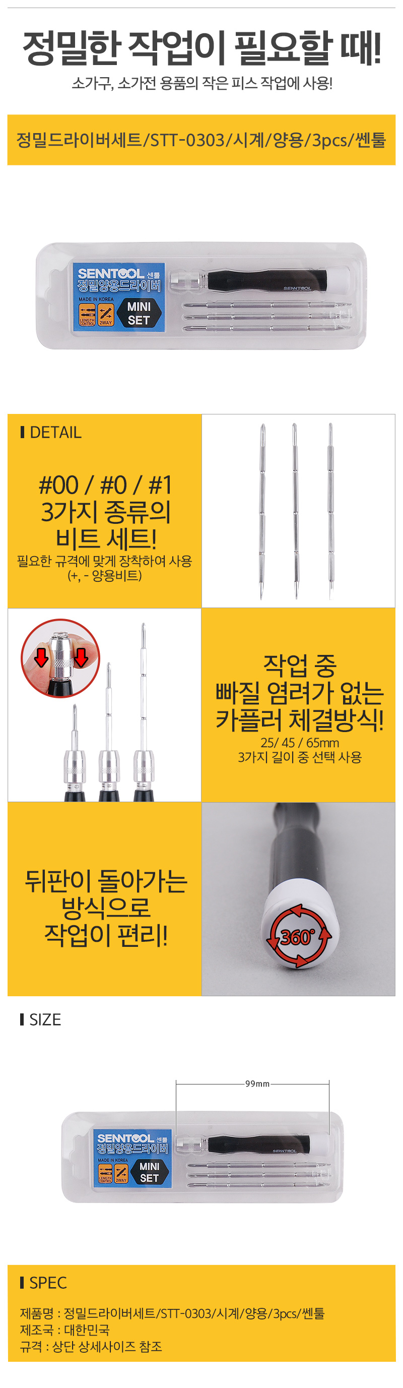 정밀드라이버세트 STT-0303 시계 양용 3pcs 센툴