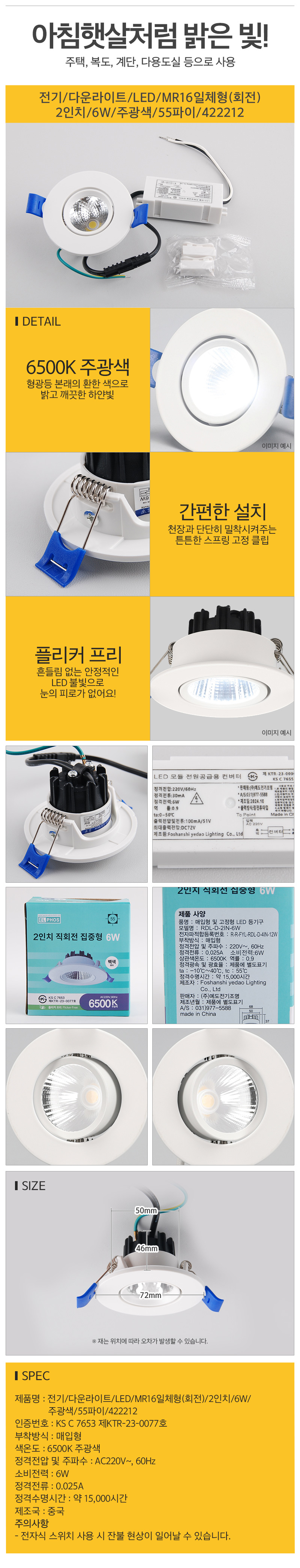 전기 다운라이트 LED MR16일체형(회전) 2인치 6W 주광