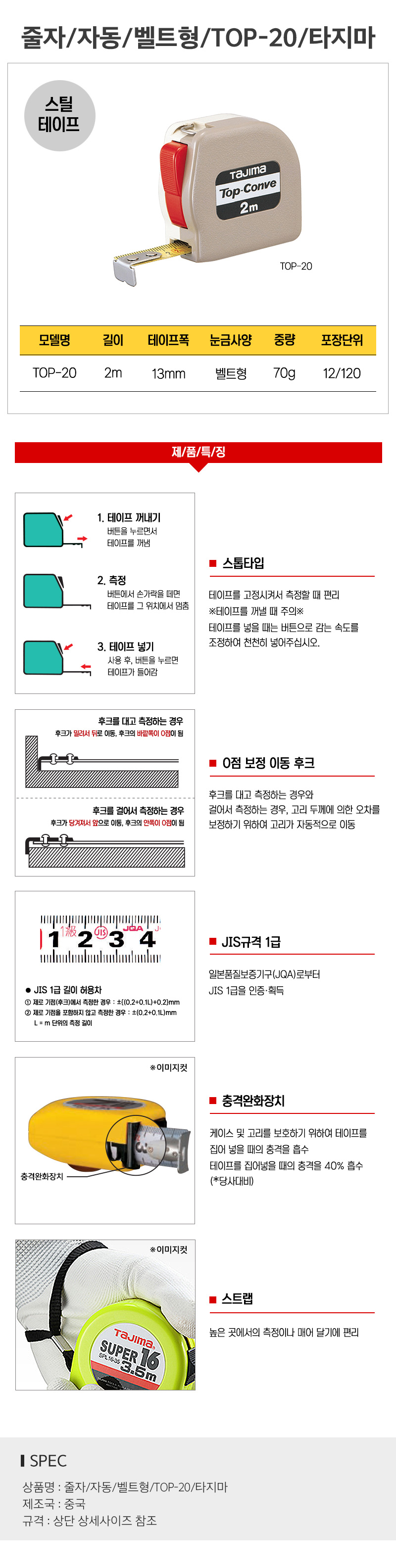 줄자 자동 벨트형 TOP-20 타지마