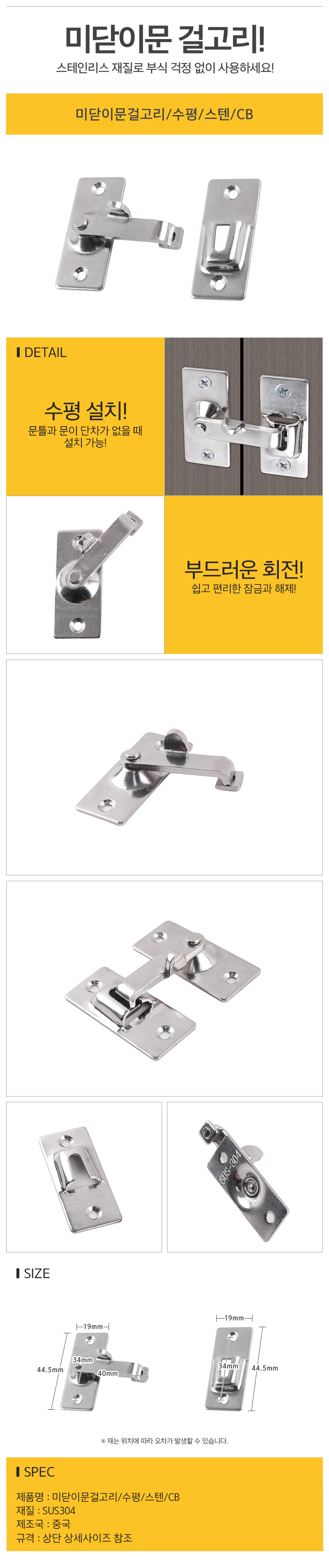 미닫이문걸고리 수평 스텐 CB