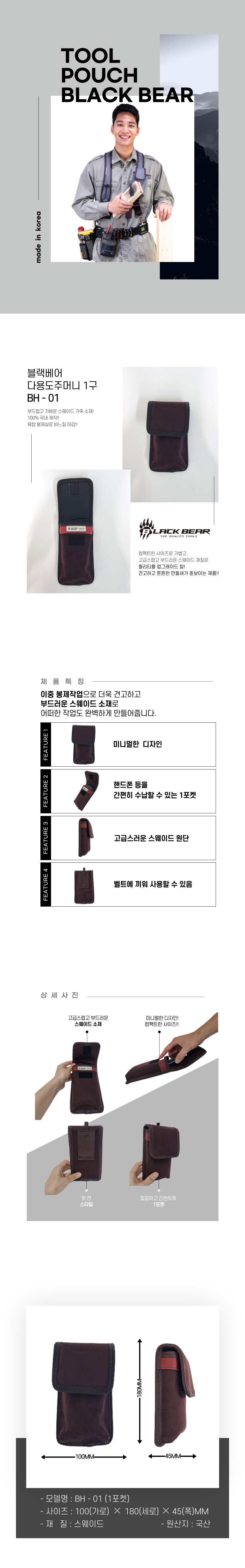 다용도주머니 1구 BH-01 블랙베어