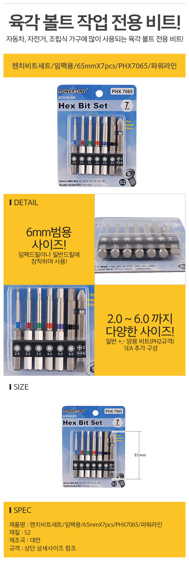 렌치비트세트 임팩용 65mmx7pcs PHX7065 파워라인