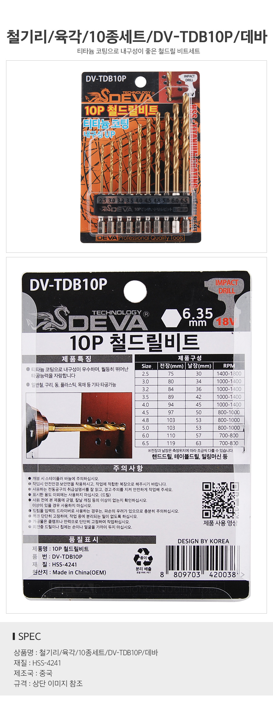 철기리 육각 10종세트 DV-TDB10P 데바