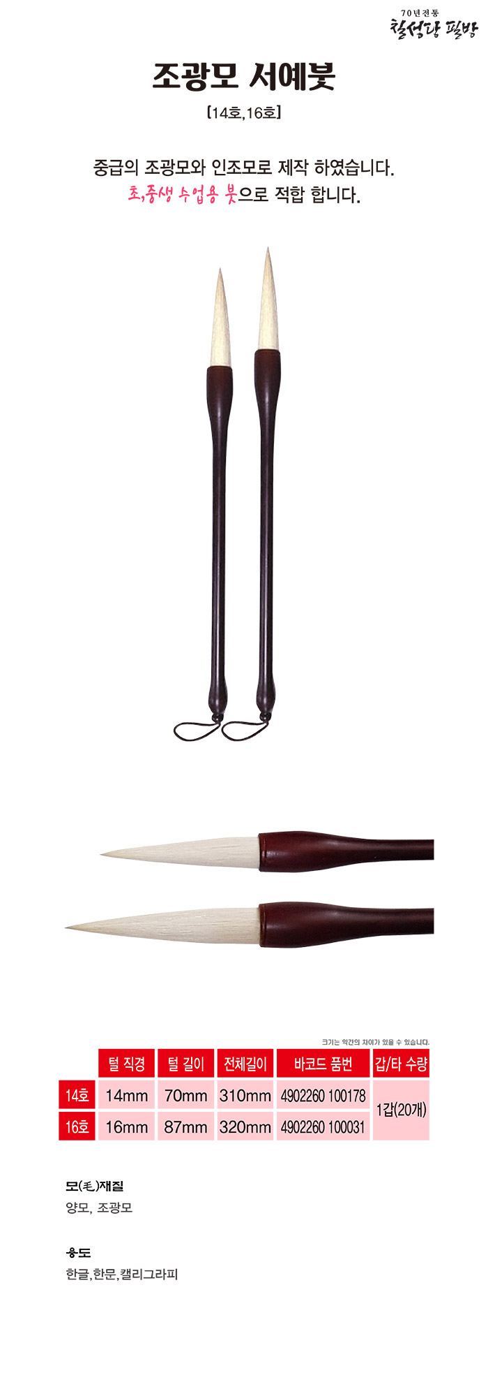칠성당 16000 서예붓 조광모 14호 미술용품 14mm (1개