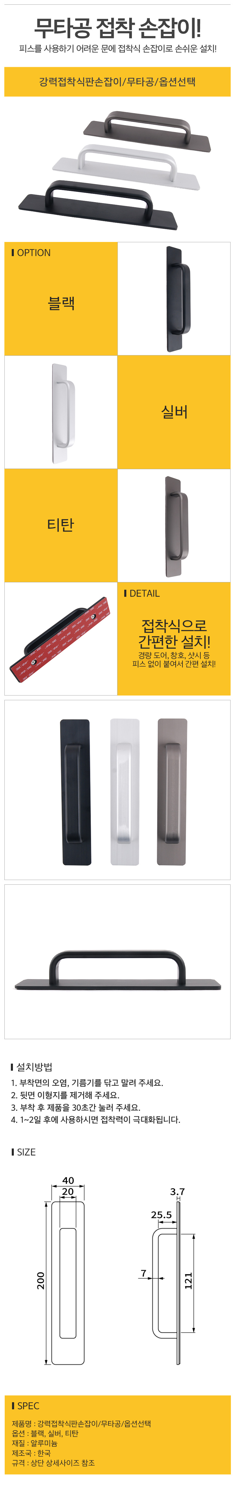 강력접착식판손잡이 무타공 옵션선택