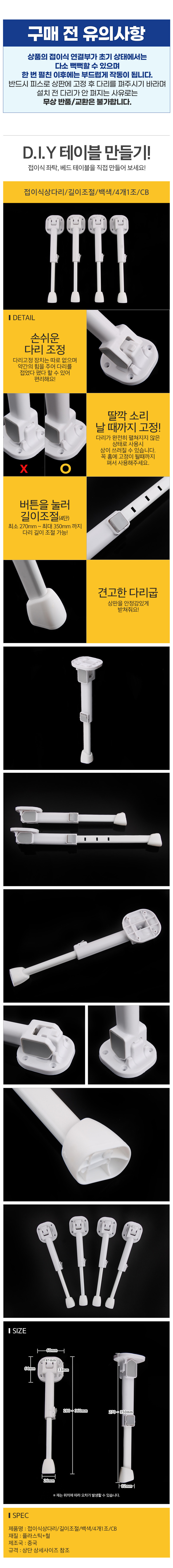 접이식상다리 길이조절 백색 4개1조 CB