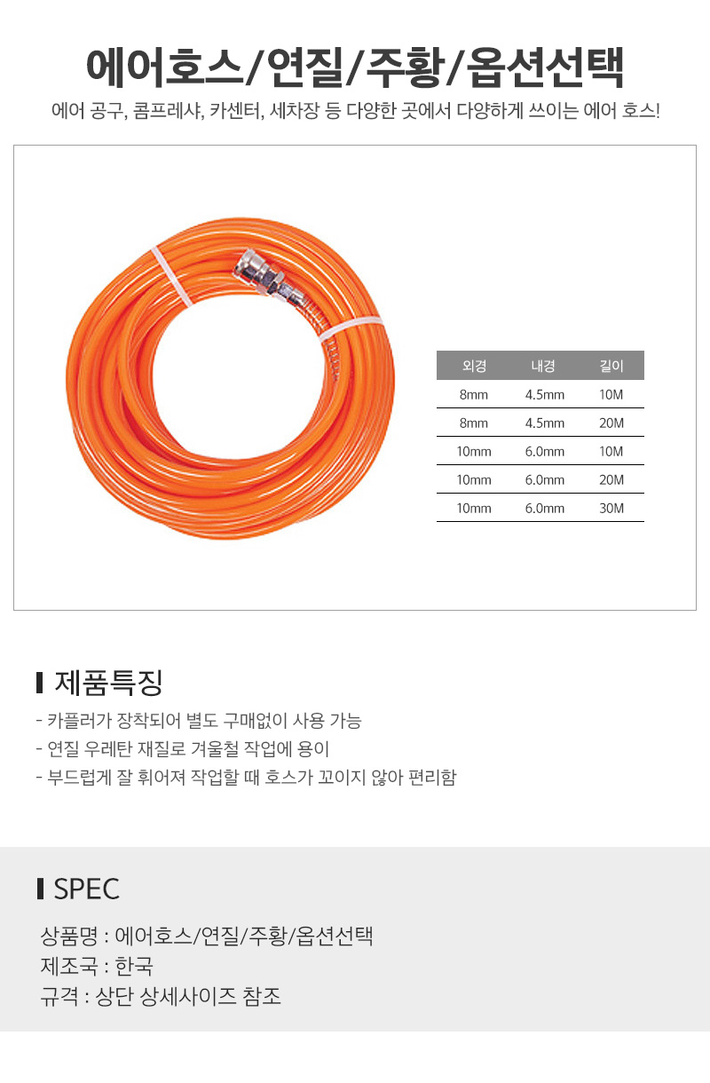 에어호스 연질 주황 옵션선택
