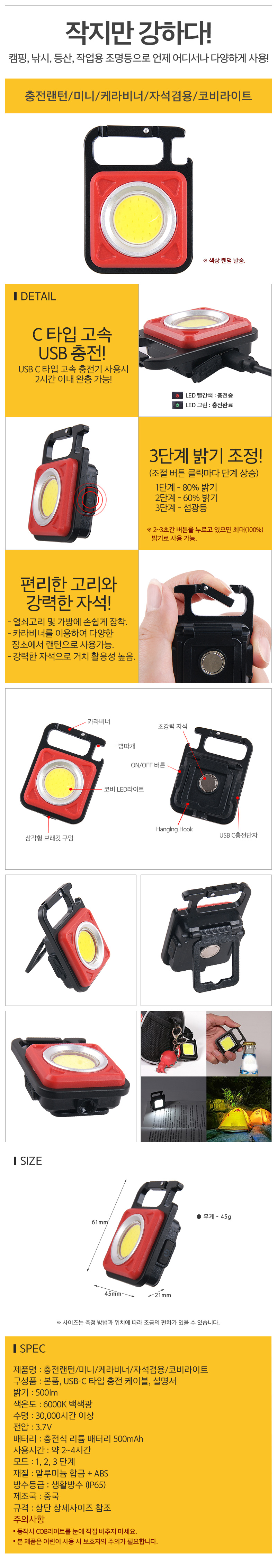 충전랜턴 미니 케라비너 자석겸용 코비라이트