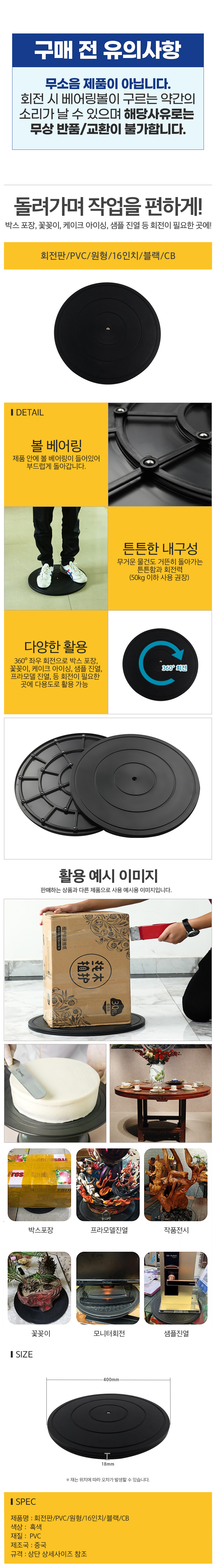 회전판 PVC 원형 16인치 블랙 CB