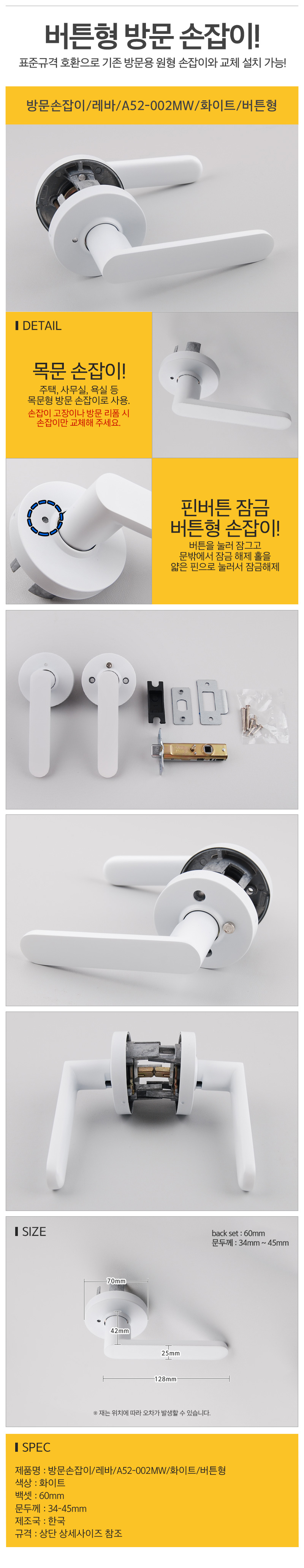 방문손잡이 레바 A52-002MW 화이트 버튼형