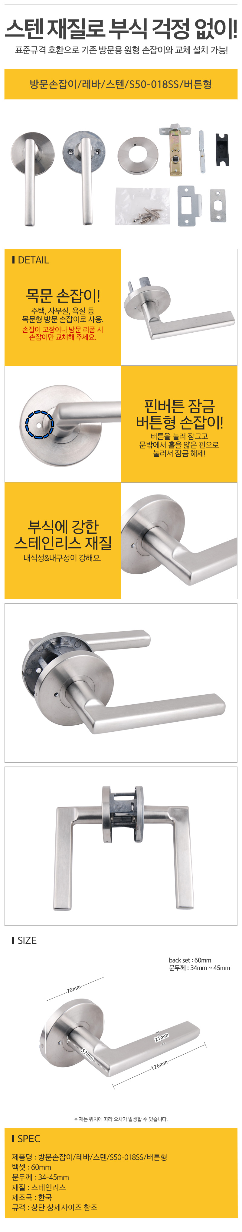 방문손잡이 레바 스텐 S50-018SS 버튼형