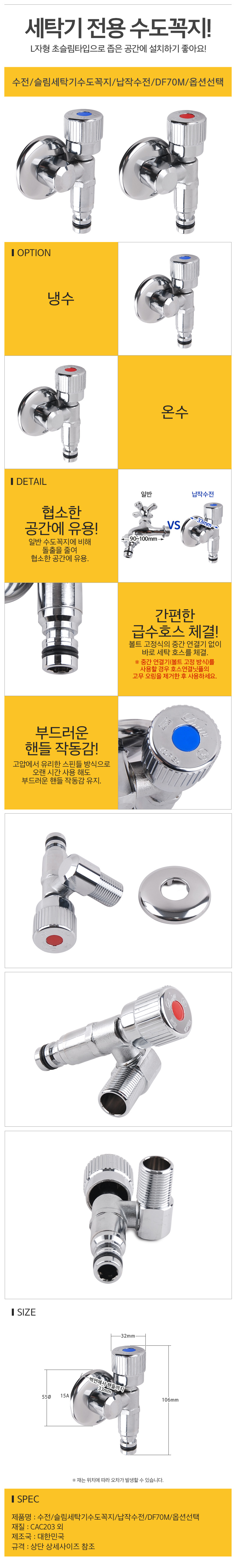 수전 슬림세탁기수도꼭지 납작수전 DF70M 옵션선택