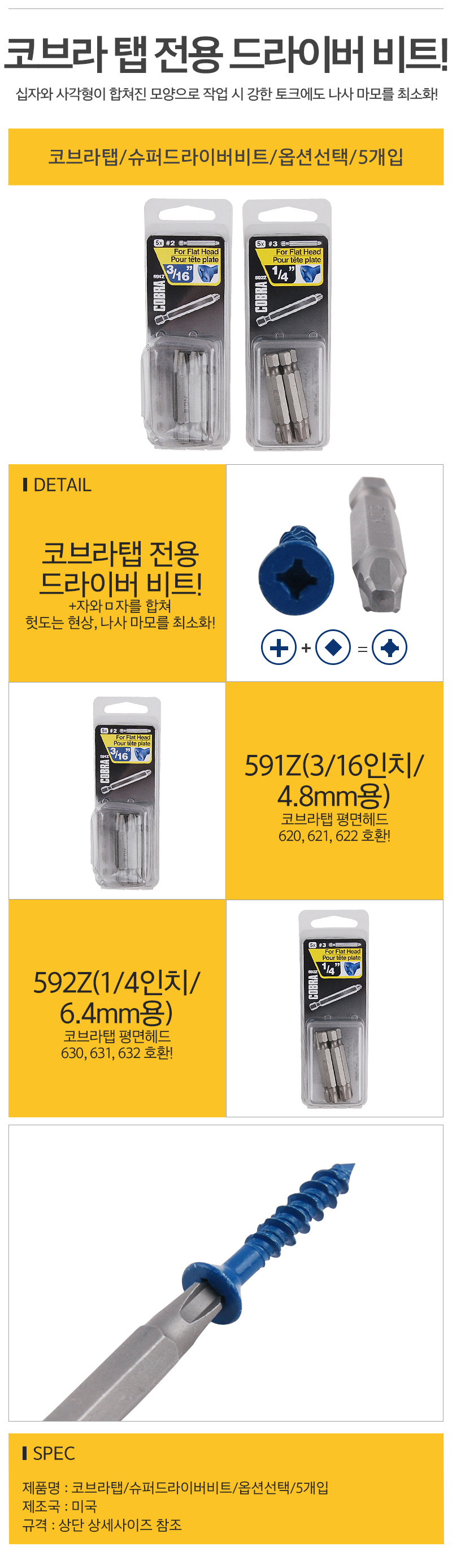 코브라탭 슈퍼드라이버비트 옵션선택 5개입