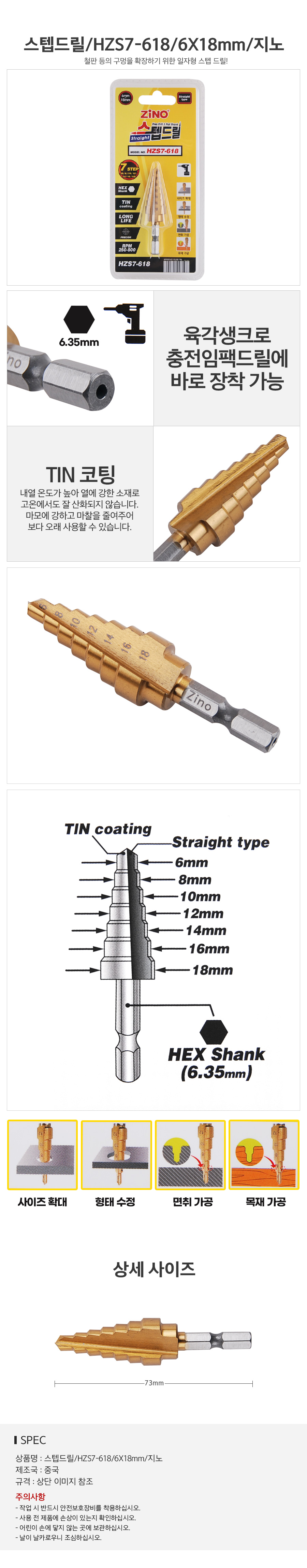 스텝드릴 HZS7-618 6X18mm 지노