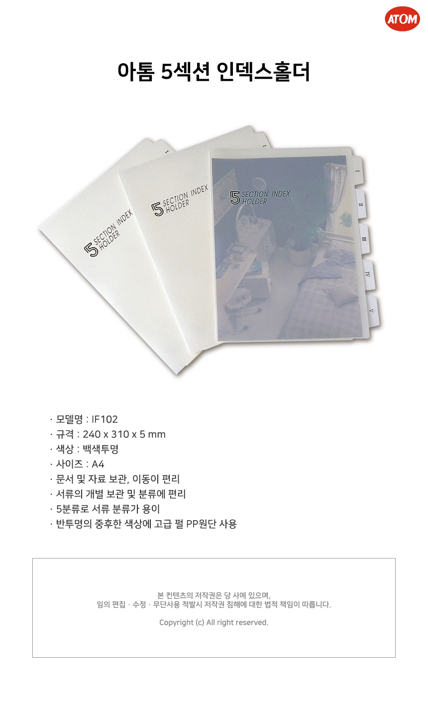 (아톰) 5섹션 인덱스홀더 IF102 흰색 (10개입)