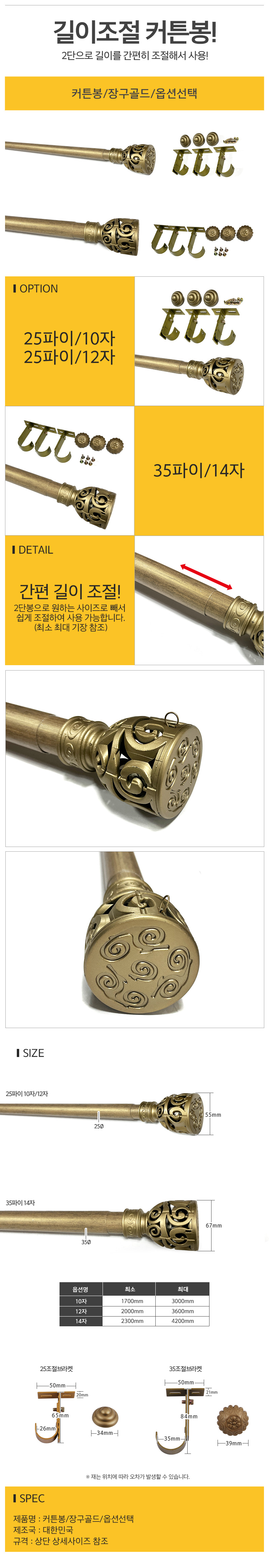 커튼봉 장구골드 옵션선택