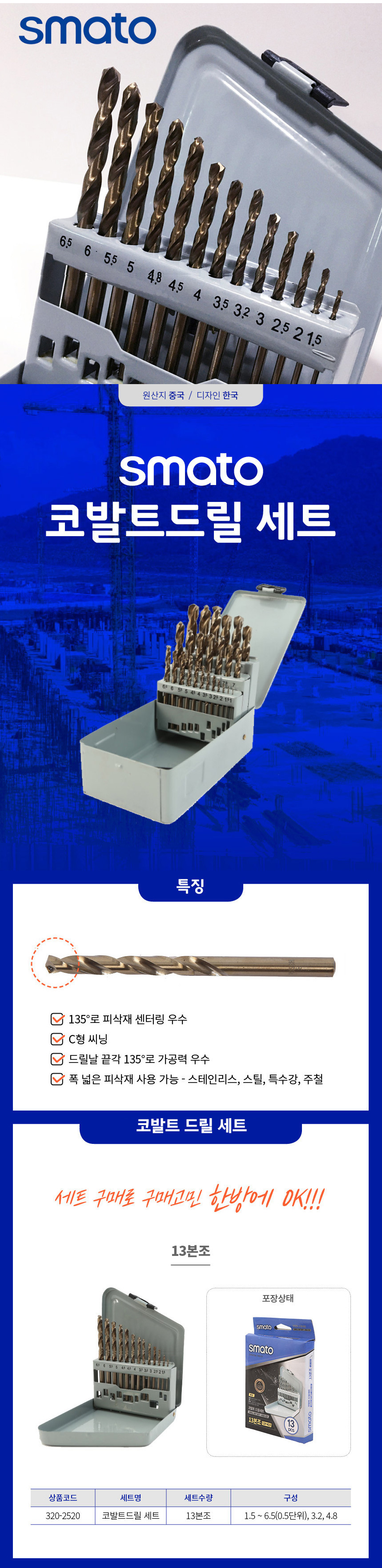코발트기리세트 13pcs (1.5mm~6.5mm) 스마토