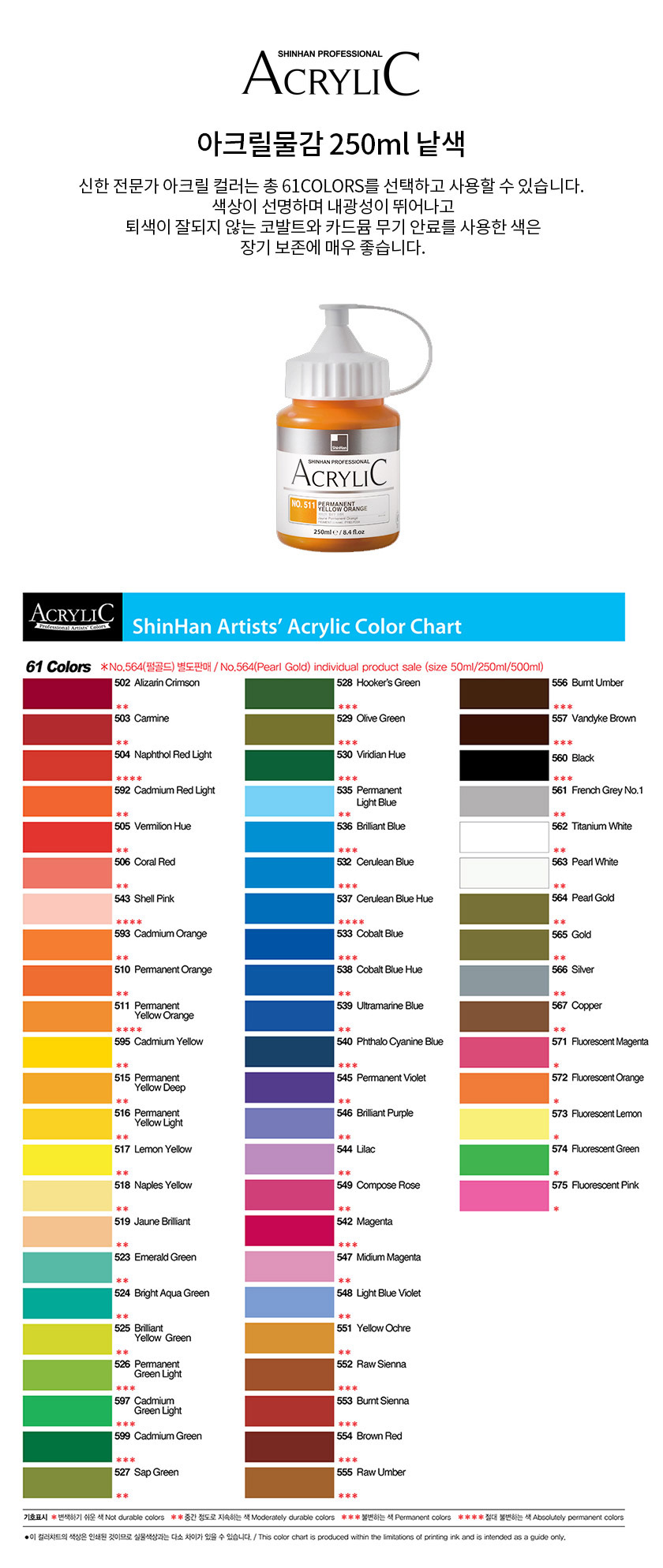 신한 아크릴물감 250ml D NO.595 카드뮴 옐로 (1개입)
