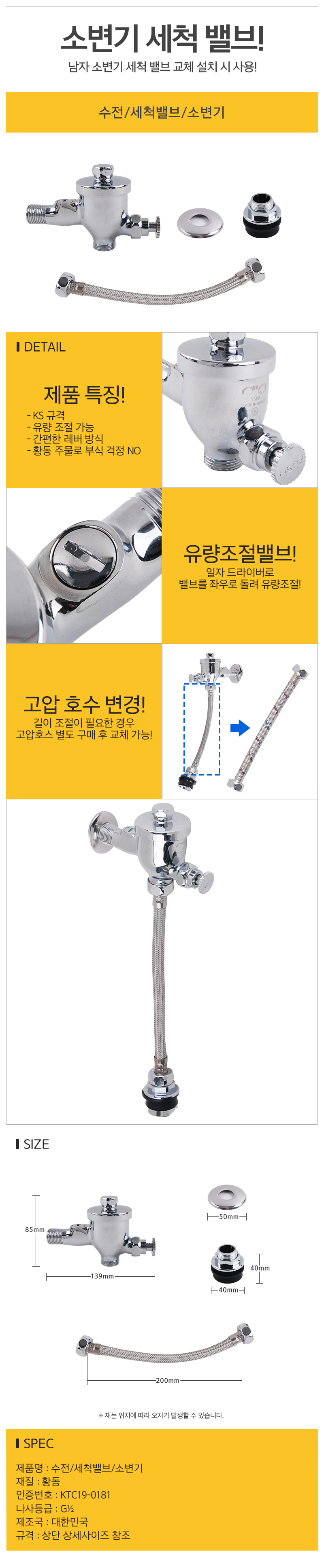 수전 세척밸브 소변기