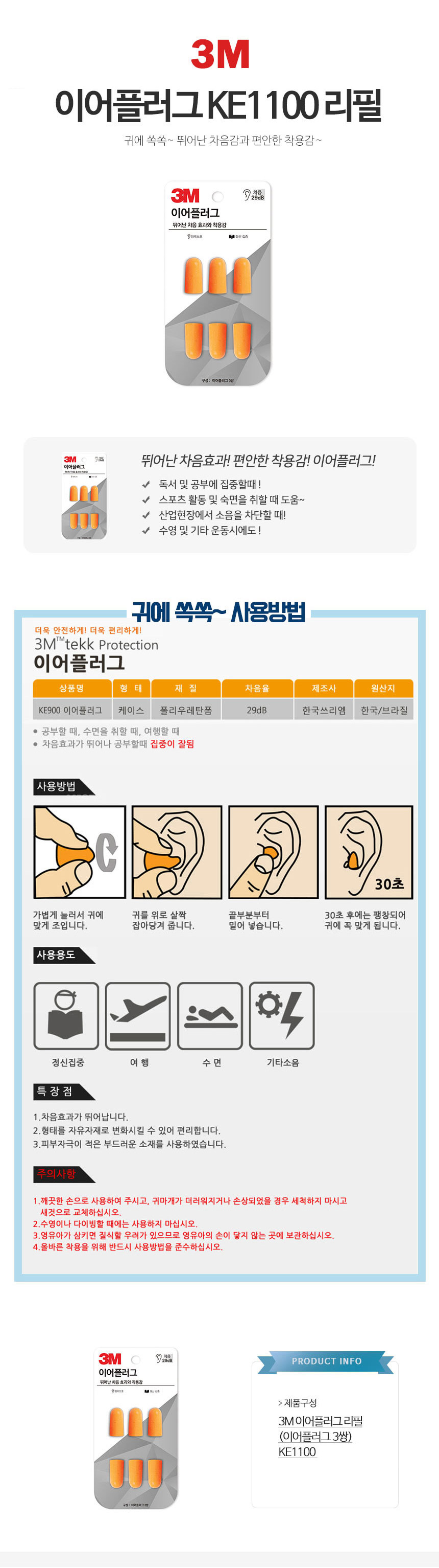 (3M) 휴대용귀마개 이어플러그 KE-1100 DIY 리필 6개