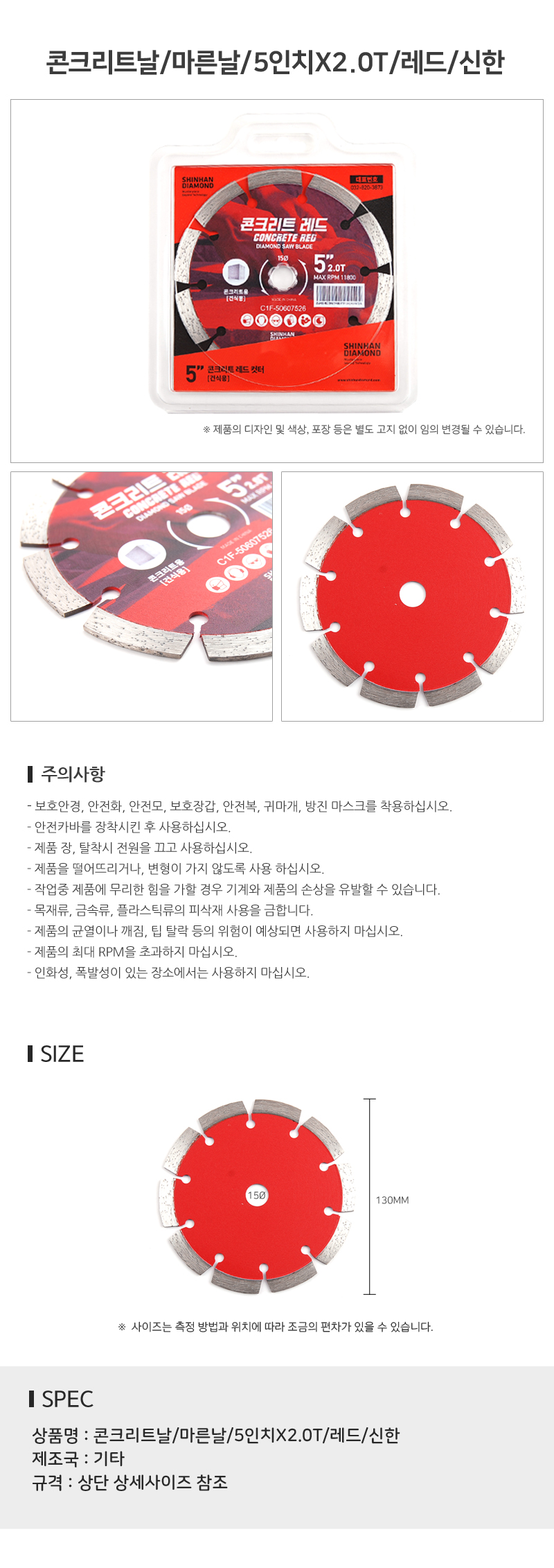 콘크리트날 마른날 5인치X2.0T 레드 신한