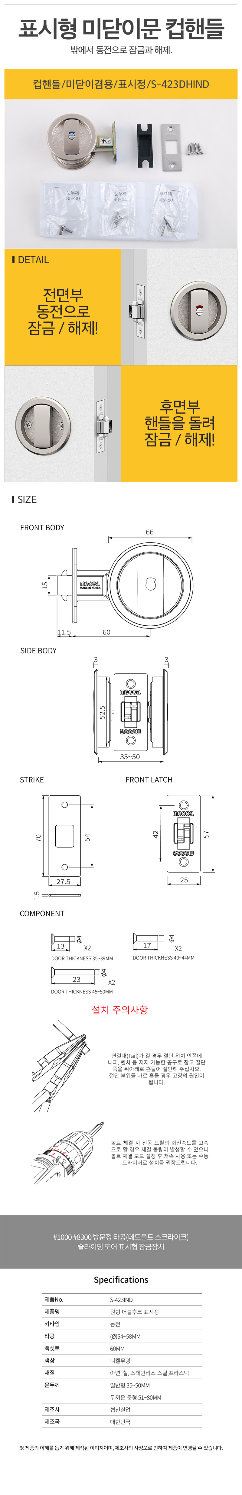 컵핸들 미닫이겸용 표시정 S-423DHIND