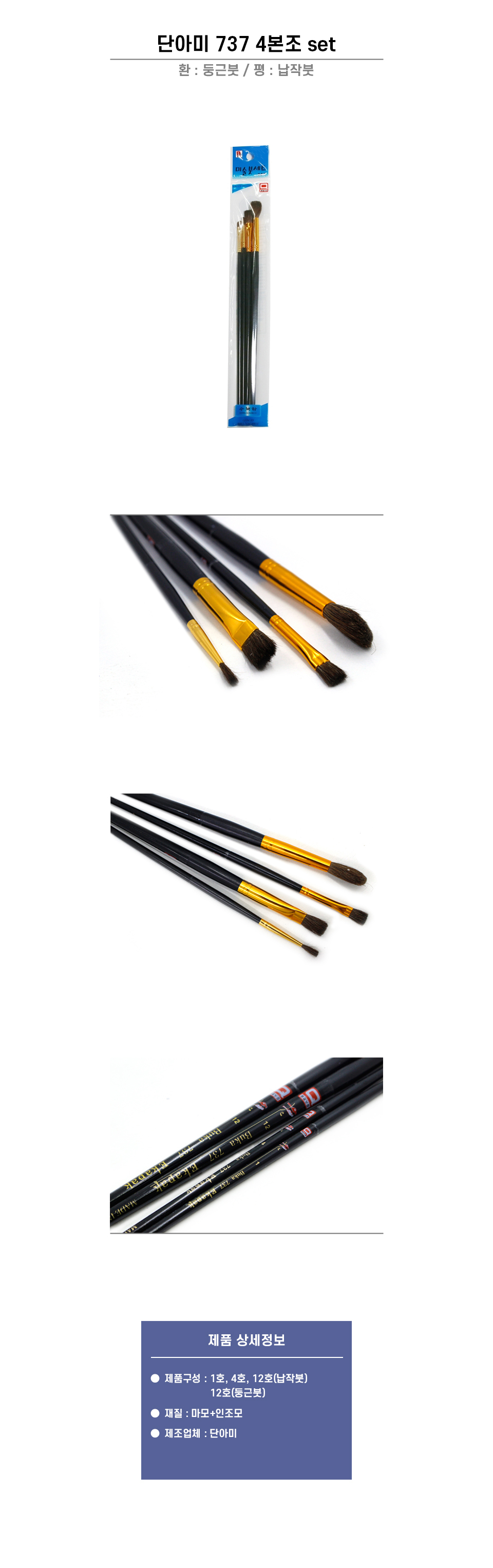 단아 737 수채화붓 세트 4본조 마모+인조모