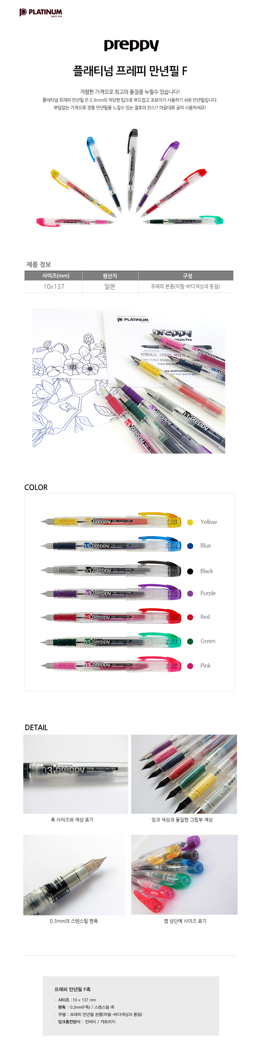 프레피 만년필 PPQ-200 30 옐로우 +카트리지1개 (10개