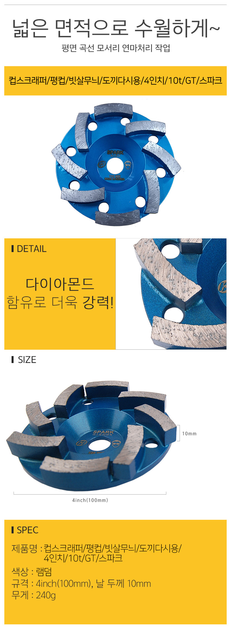 컵스크래퍼 평컵 빗살무늬 도끼다시용 4인치 10t 스파