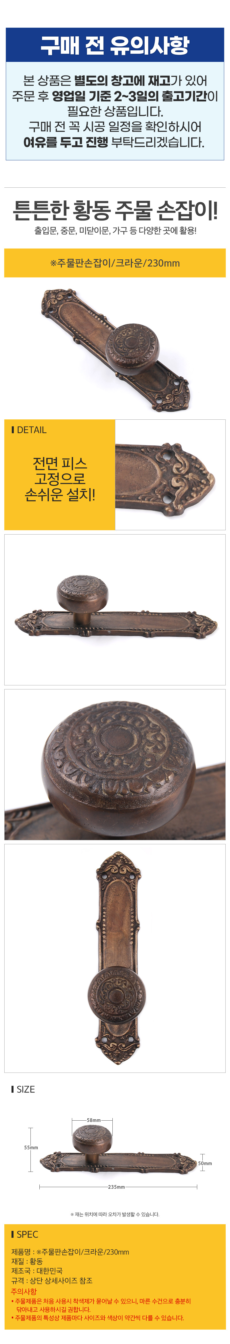주물판손잡이 크라운 230mm
