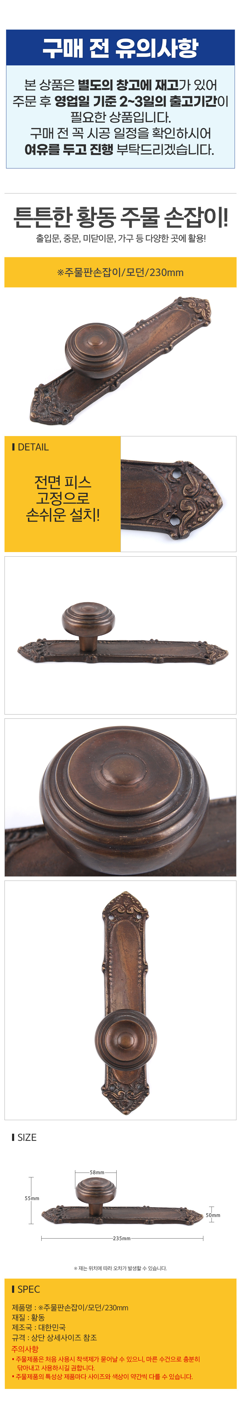 주물판손잡이 모던 230mm