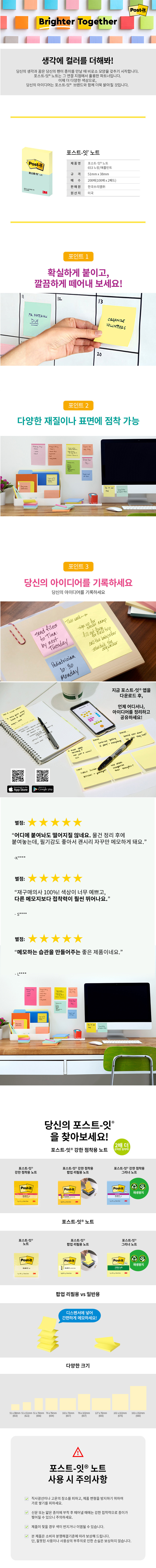 3M 포스트잇 일반 653-2 노랑/애플민트
