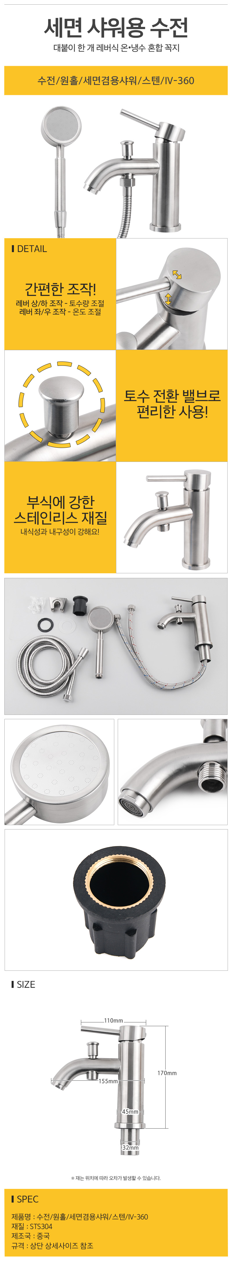 수전 원홀 세면겸용샤워 스텐 IV-360