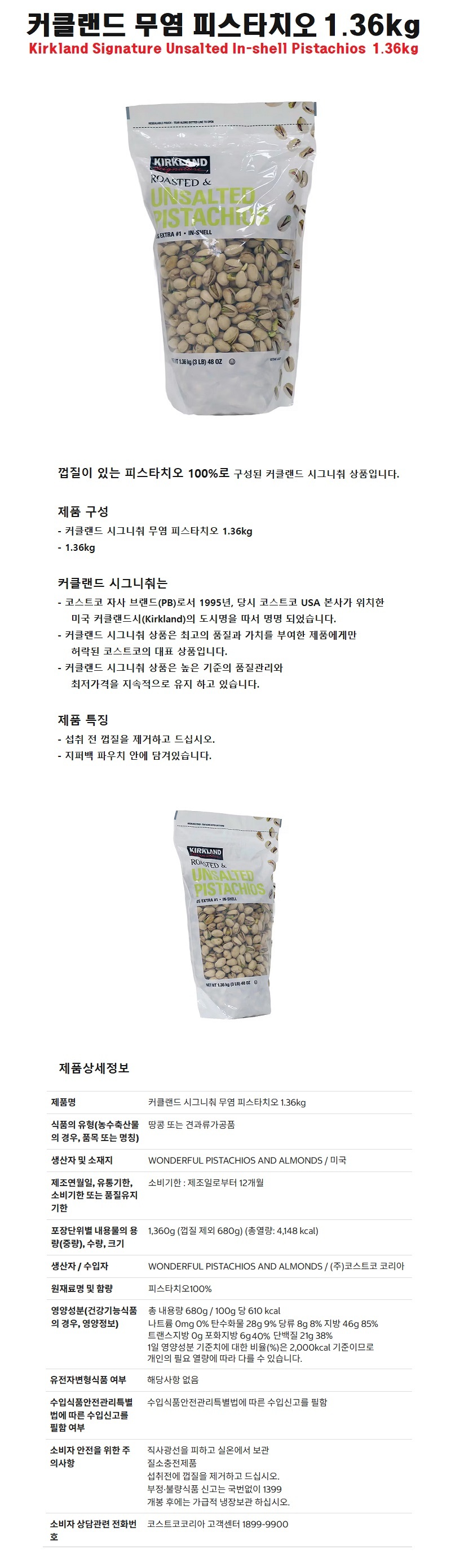 커클랜드 시그니춰 무염 피스타치오 1.36kg