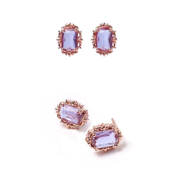 • 바이올렛 스퀘어 큐빅 925실버 로즈골드 귀걸이